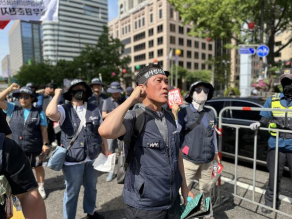 세종대로에서 16일부터 1박 2일 투쟁을 진행하고 있는 건설노조 조합원과 가맹조직 조합원 3만여 명이 모여 ‘양회동 열사 염원 실현! 노동, 민생, 민주, 평화 파괴 윤석열 정권 퇴진! 민주노총 결의대회’를 진행했다.